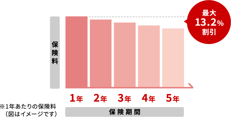 補償内容等が同条件の契約の場合、長期契約を一括払いでお支払いいただくと保険料が最大13.2%割引となります。